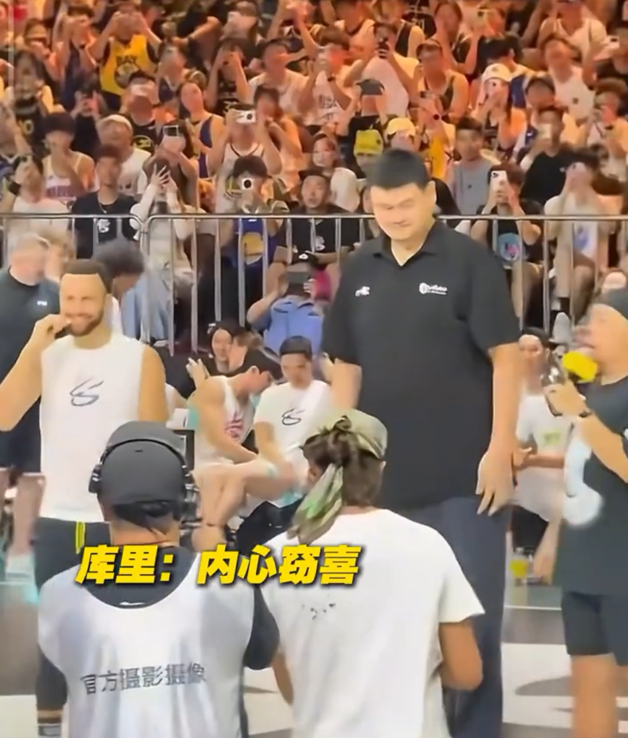 笑喷!库里中国行与姚明梦幻同框,1米88傻库当着2米26姚主席秀肌肉